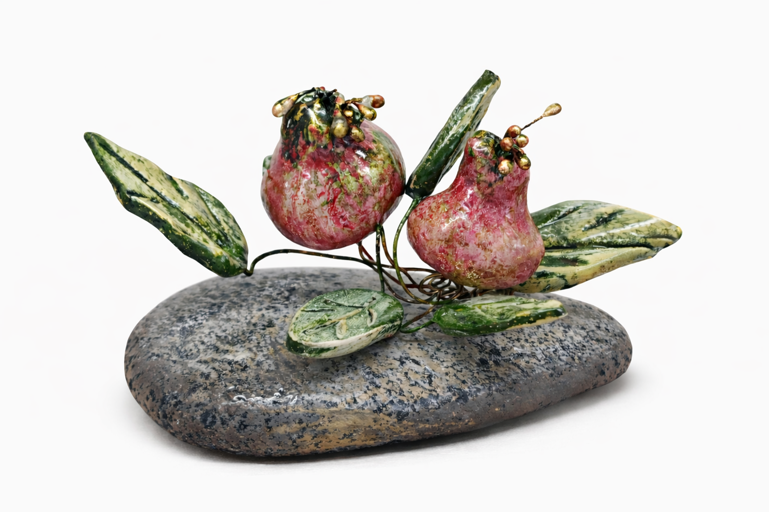 Χειροποίητο Διπλό Ρόδι σε Πέτρα – Διακοσμητικό Ευημερίας.